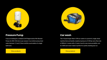 Service-focused sections for On-Grid, Off-Grid, Solar Water Heaters, and Pressure Pumps