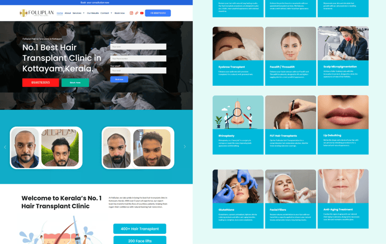 Built an SEO-optimized, mobile-friendly website designed for lead generation and seamless user experience. Optimized the clinic’s Google My Business profile to boost local search visibility and drive more calls and visits. Launched high-converting Google Search Call Ads, consistently ranking in the top position on Google Search. Additionally, achieved organic first-page and top #1 rankings for high-intent keywords like “Hair Transplant Kottayam”, resulting in a significant increase in qualified leads and brand authority.
