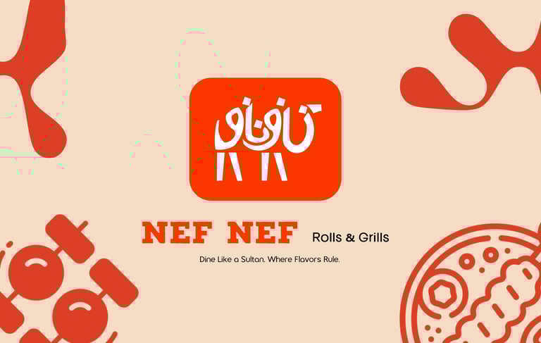 For Nef Nef Rolls and Grills, a bold new venture from Poratta Hut, I developed a distinctive logo and brand identity that reflects the rich flavors and street-style energy of the brand. The design blends Middle Eastern influence with a modern, minimal twist—featuring custom Arabic-inspired typography shaped like a stylized camel, symbolizing heritage, strength, and journey. Paired with a warm, spicy color palette and the tagline “Dine Like a Sultan. Where Flavors Rule.”, the identity is playful yet premium—perfectly crafted to turn heads on packaging, storefronts, and social feeds.